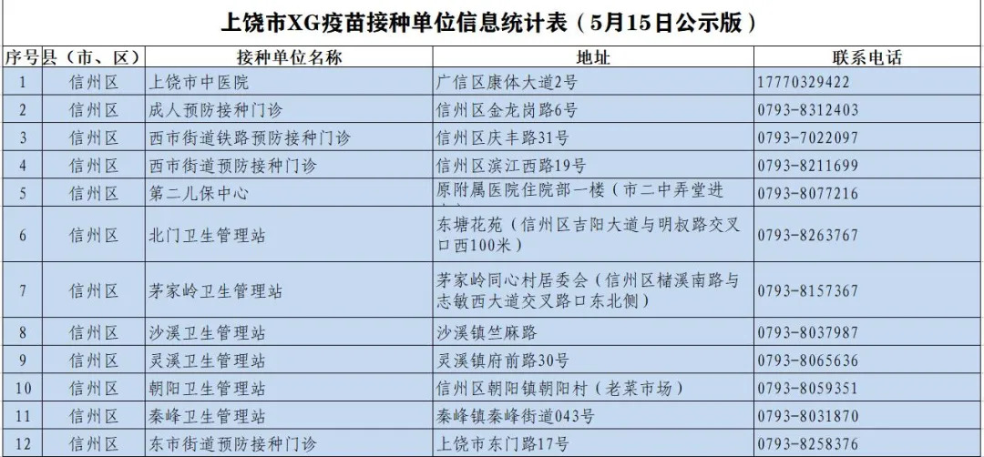 上饒市信州區(qū)新冠病毒疫苗接種點信息
