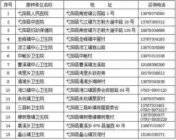 接種地點:江西省上饒市弋陽縣弋江鎮(zhèn)楊橋路1號,
