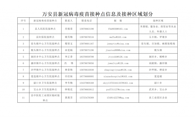 吉安市萬(wàn)安縣新冠病毒疫苗接種點(diǎn)信息