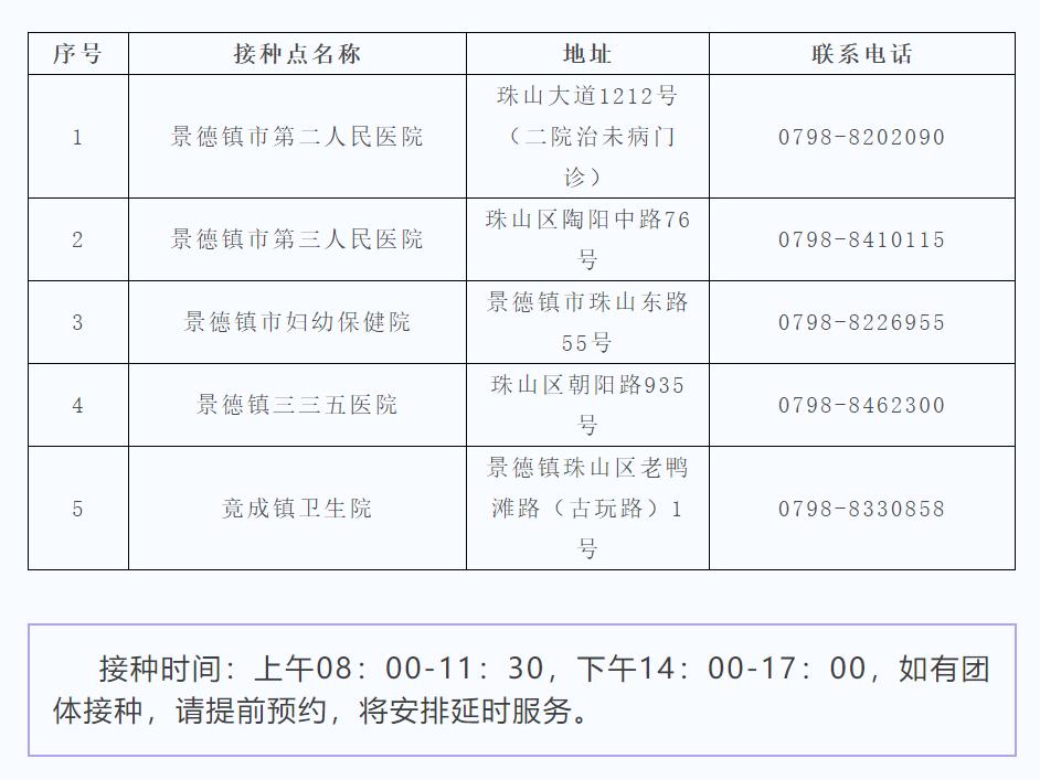 景德鎮(zhèn)市珠山區(qū)新冠病毒疫苗接種點信息
