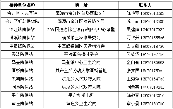 鷹潭市余江區(qū)新冠病毒疫苗接種點(diǎn)信息