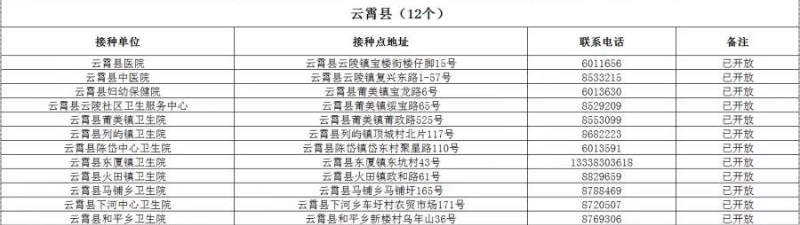 漳州市云霄縣新冠病毒疫苗接種點(diǎn)信息