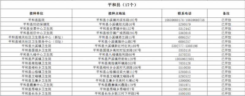 接種地點(diǎn):福建省漳州市平和縣蘆渓鎮(zhèn)府前街120號(hào)