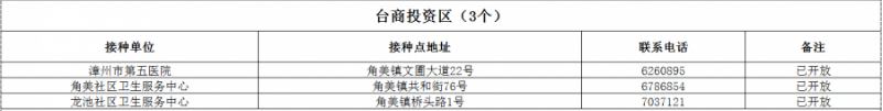 漳州市臺(tái)商投資區(qū)新冠病毒疫苗接種點(diǎn)信息