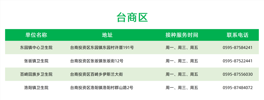 接種地點:福建省泉州市臺商投資區(qū)張坂鎮(zhèn)張坂街12號