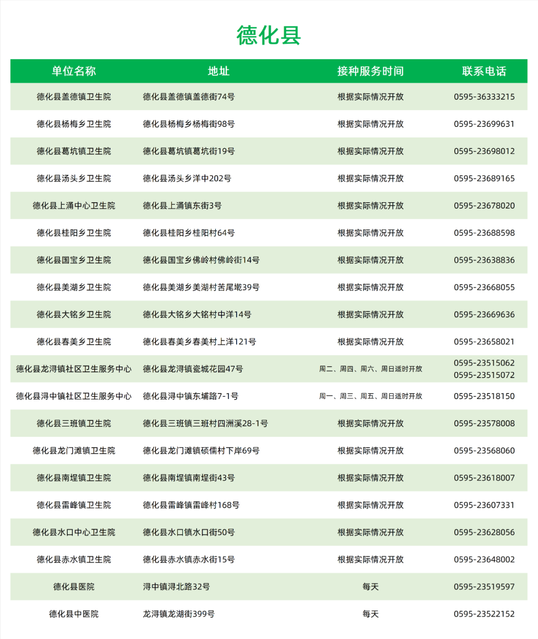 接種地點:福建省泉州市德化縣南埕鎮(zhèn)南埕街43號