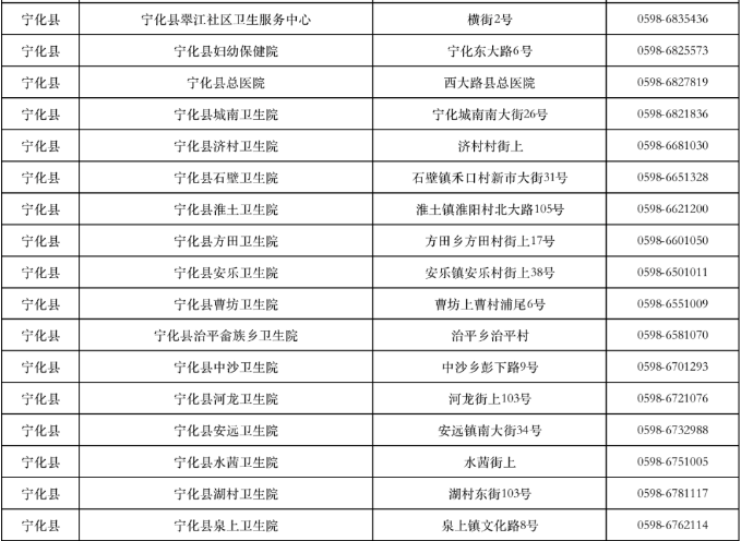 接種地點:福建省三明市寧化縣安遠鎮(zhèn)南大街67號