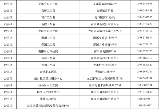 三明市沙縣區(qū)新冠病毒疫苗接種點(diǎn)信息