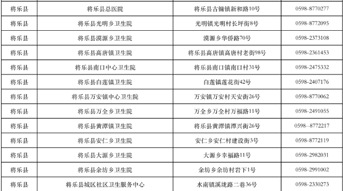 三明市將樂縣新冠病毒疫苗接種點(diǎn)信息