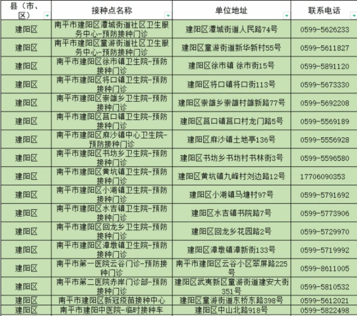 南平市建陽區(qū)新冠病毒疫苗接種點信息