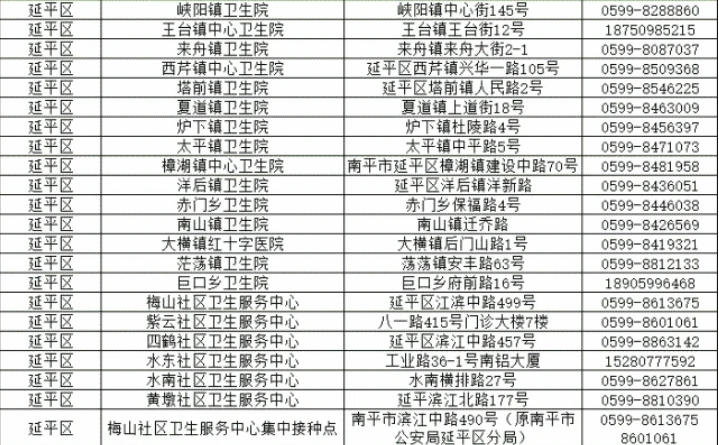 南平市延平區(qū)新冠病毒疫苗接種點(diǎn)信息