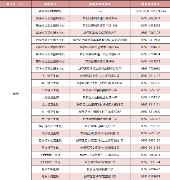 接種地點:福建省龍巖市新羅區(qū)東城街道和平路18號