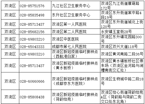 成都市雙流區(qū)新冠病毒疫苗接種點信息