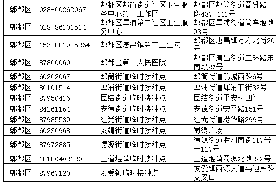 成都市郫都區(qū)新冠病毒疫苗接種點(diǎn)信息