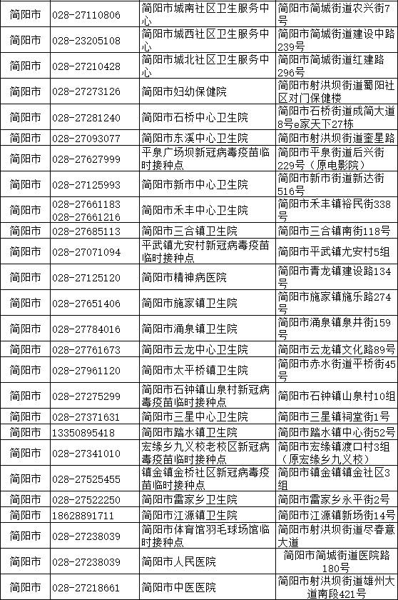 成都市簡(jiǎn)陽(yáng)市新冠病毒疫苗接種點(diǎn)信息