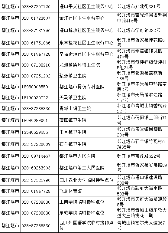 接種地點:四川省成都市都江堰市柳街鎮(zhèn)順江社區(qū)影劇院街1號