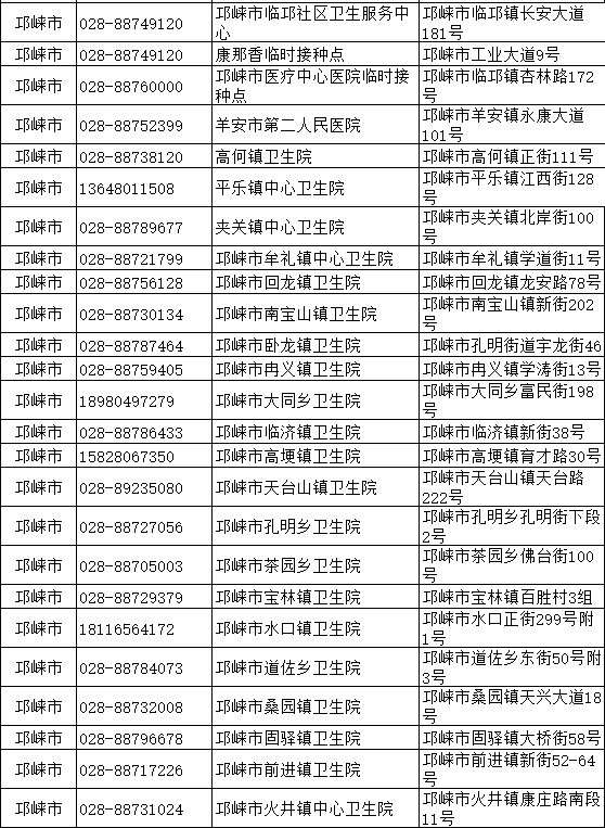 成都市邛崍市新冠病毒疫苗接種點(diǎn)信息