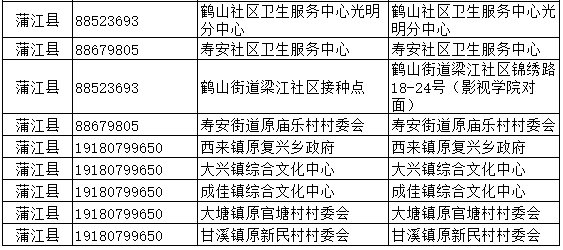 成都市蒲江縣新冠病毒疫苗接種點信息