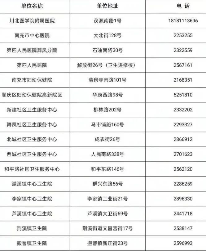 接種地點:四川省南充市順慶區(qū)和平東路146號