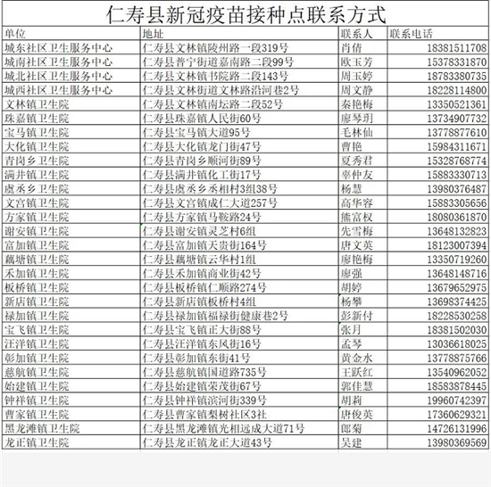 眉山市仁壽縣新冠病毒疫苗接種點(diǎn)信息