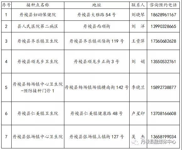 眉山市丹棱縣新冠病毒疫苗接種點信息