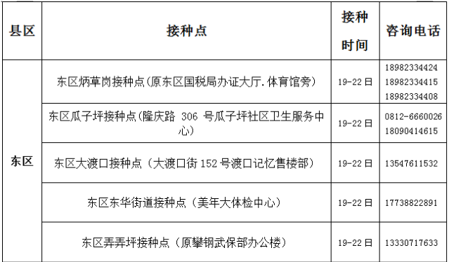 1、攀枝花市東區(qū)新冠疫苗接種咨詢時(shí)間、電話