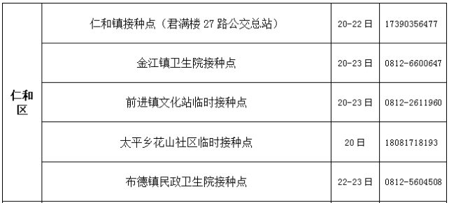 攀枝花市仁和區(qū)新冠病毒疫苗接種點信息