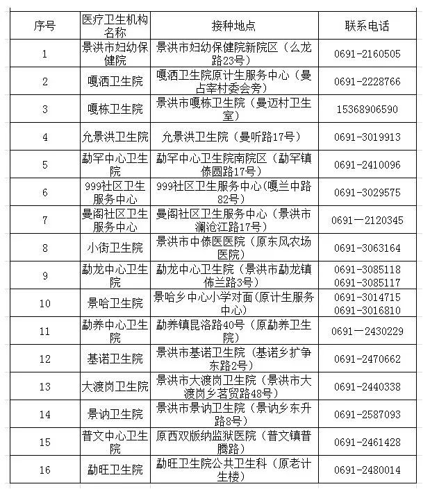接種地點:云南省西雙版納州景洪市嘎蘭南路2號