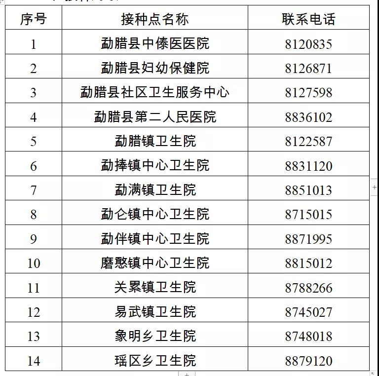 勐臘縣新冠病毒疫苗接種點(diǎn)信息