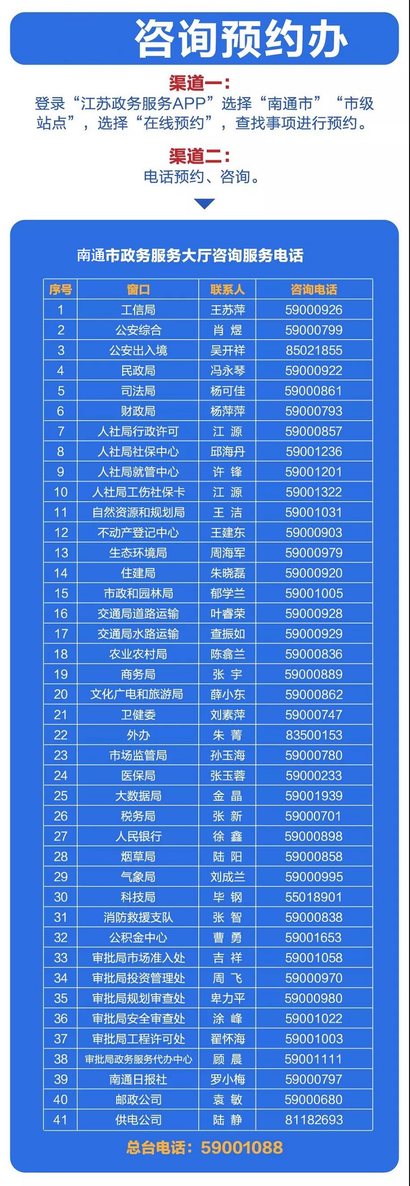 南通市政務(wù)服務(wù)辦事大廳入駐單位窗口咨詢(xún)電話