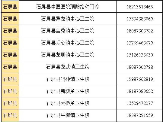 接種地點:云南省紅河州石屏縣寶秀鎮(zhèn)中截街298號,