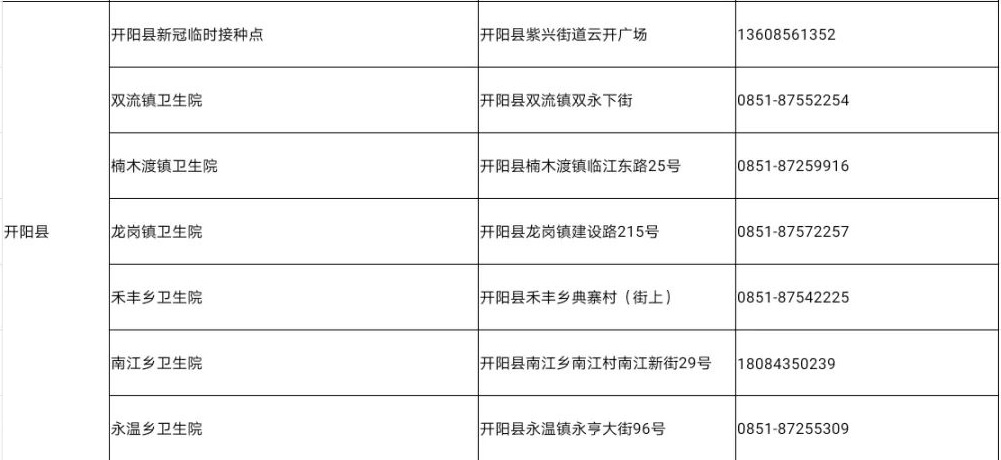 接種地點(diǎn):貴州省貴陽(yáng)市開陽(yáng)縣楠木渡鎮(zhèn)臨江東路25號(hào)