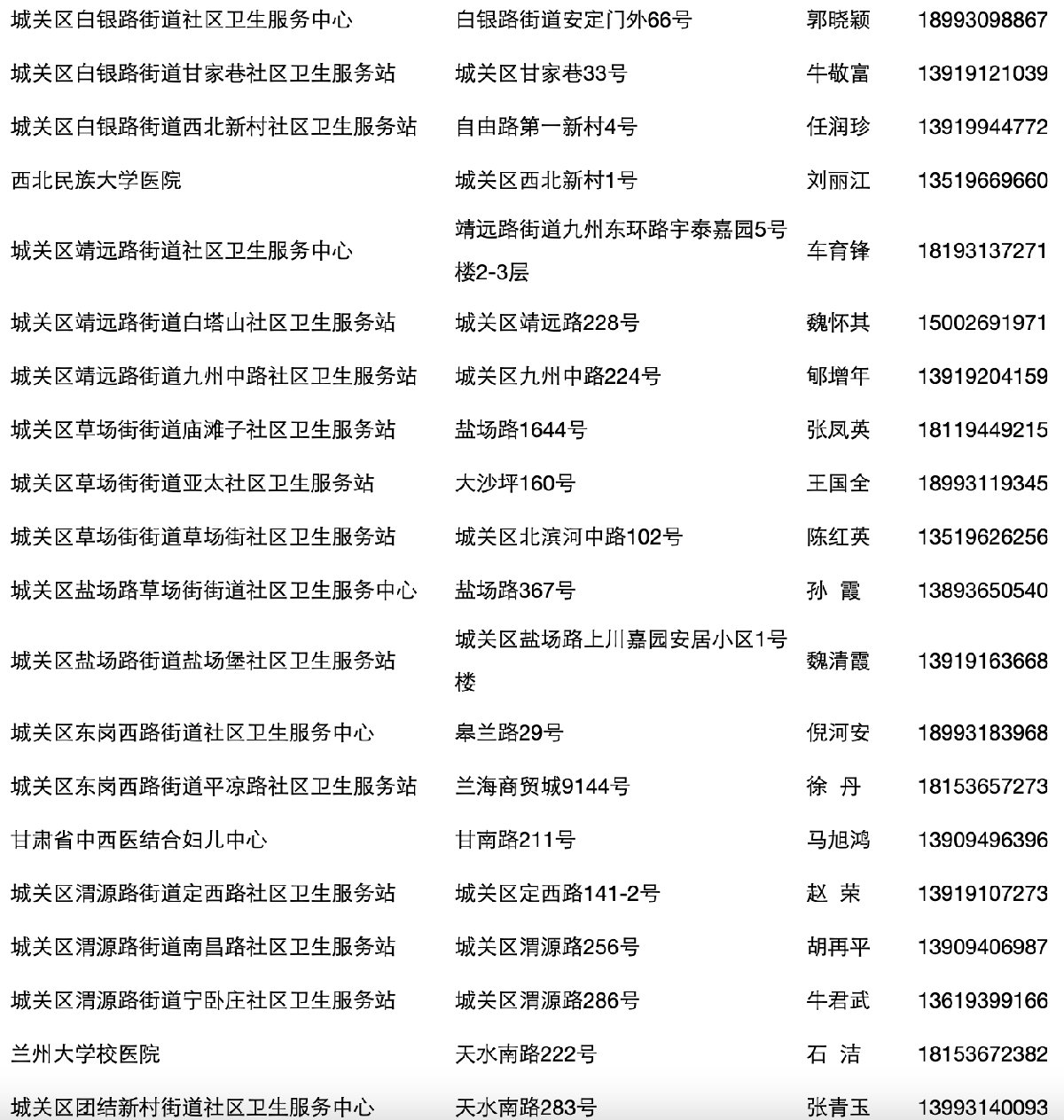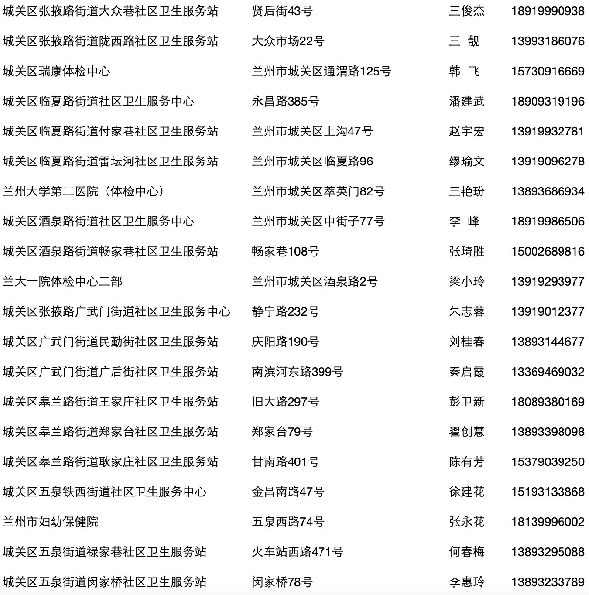 接種地點:甘肅省蘭州市城關區(qū)通渭路125號