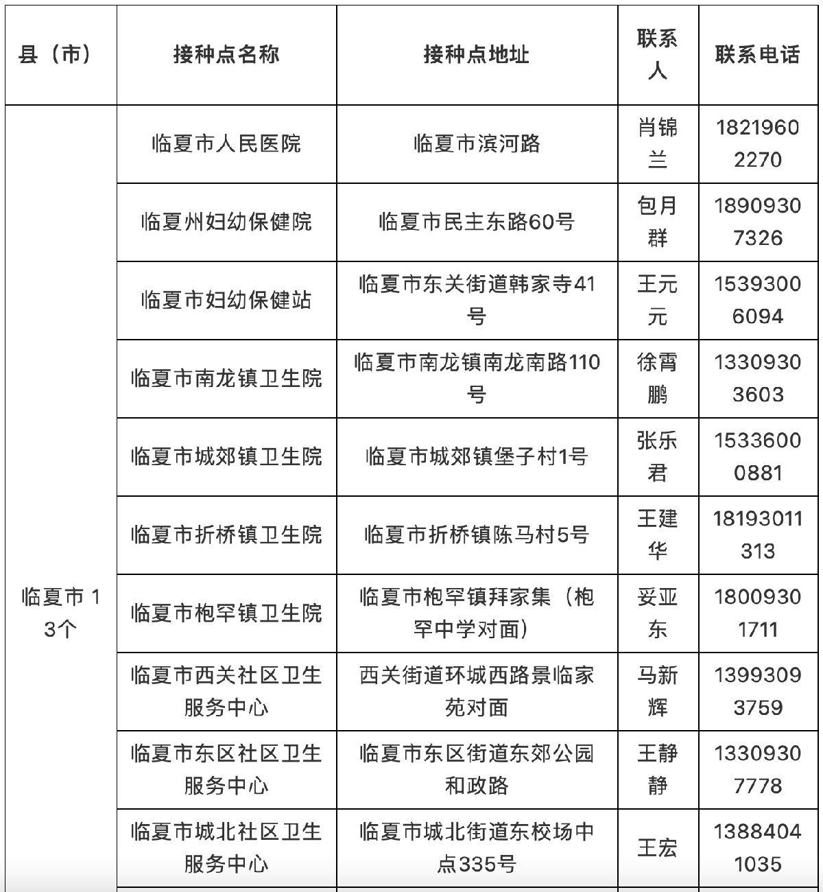 接種地點(diǎn):甘肅省臨夏州臨夏市民主東路60號(hào)