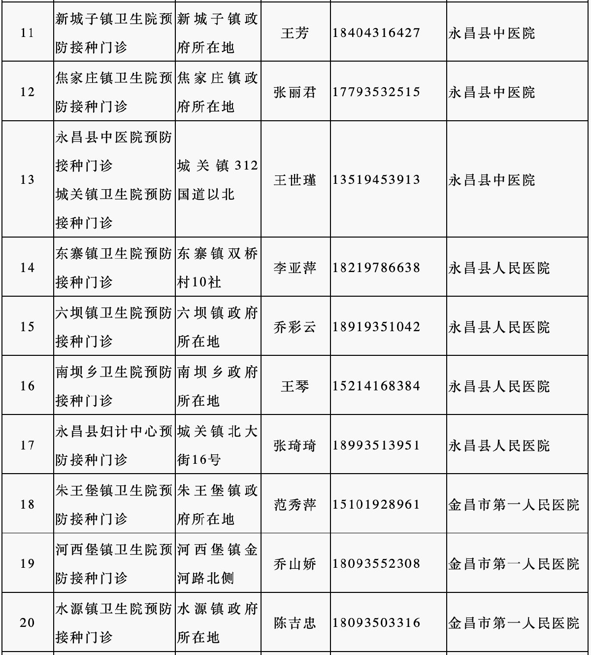 13、永昌縣人民醫(yī)院預(yù)防接種門(mén)診