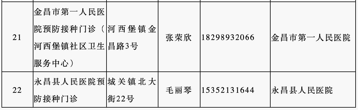 接種地點(diǎn):甘肅省金昌市永昌縣城關(guān)鎮(zhèn)北大街16號(hào)