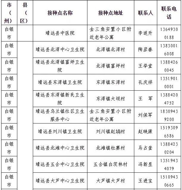 接種地點(diǎn):甘肅省白銀市靖遠(yuǎn)縣烏蘭鎮(zhèn)人民路2號(hào)