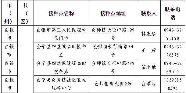 白銀市會寧縣新冠病毒疫苗接種咨詢電話