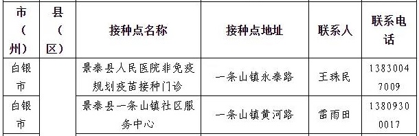 接種地點(diǎn):甘肅省白銀市景泰縣一條山鎮(zhèn)泰玉路127號(hào)