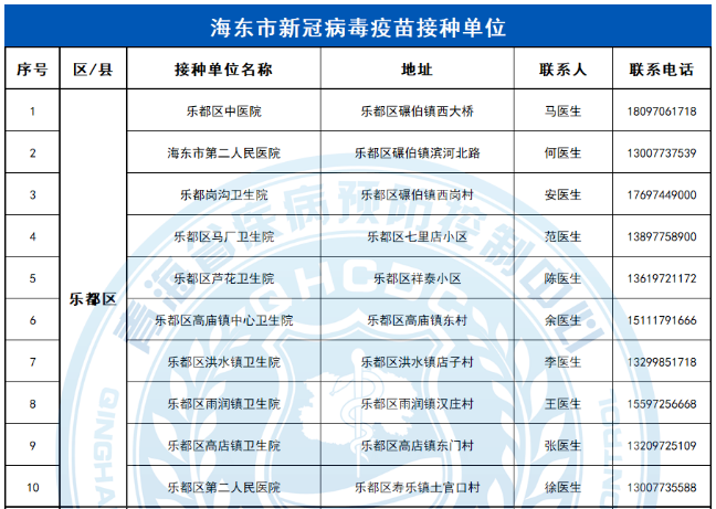 海東市樂(lè)都區(qū)新冠病毒疫苗接種咨詢(xún)電話