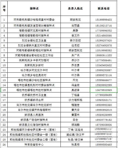 接種地點(diǎn):新疆自治區(qū)伊犁州新源縣卡普河路103號(hào),