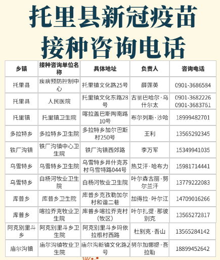 塔城地區(qū)托里縣新冠病毒疫苗接種咨詢電話