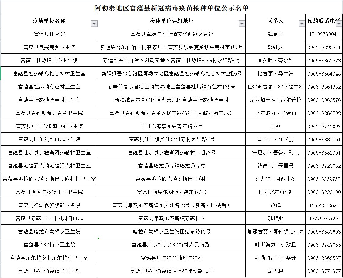 接種地點(diǎn):新疆自治區(qū)阿勒泰地區(qū)富蘊(yùn)縣文化西路268號(hào)