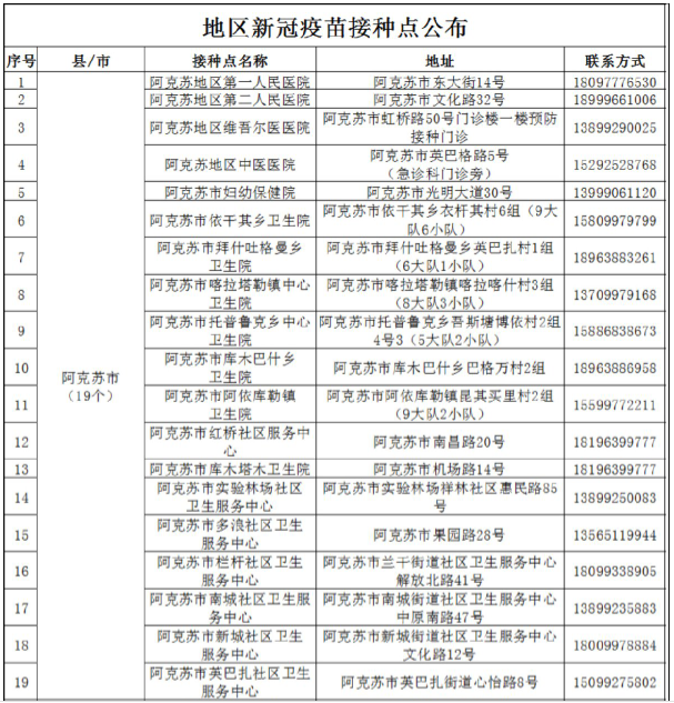 接種地點:新疆維吾爾族自治區(qū)阿克蘇市英巴格路5號(急診科門診旁)