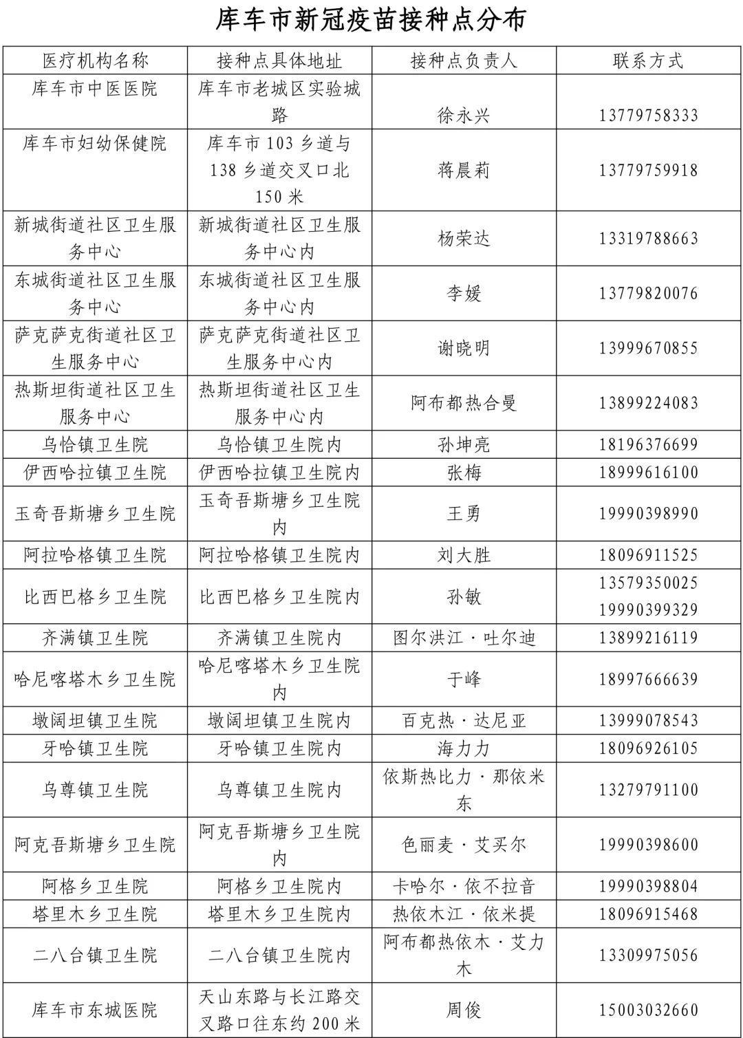 接種地點:新疆維吾爾族自治區(qū)阿克蘇地區(qū)庫車市天山東路與長江路交叉路口往東約200米;