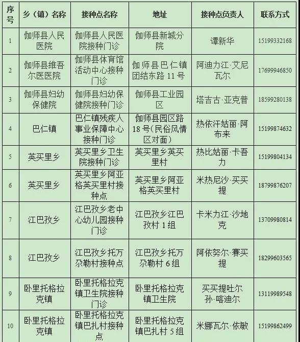 接種地點(diǎn):新疆維吾爾族自治區(qū)喀什地區(qū)伽師縣巴仁鎮(zhèn)團(tuán)結(jié)東路11號(hào);