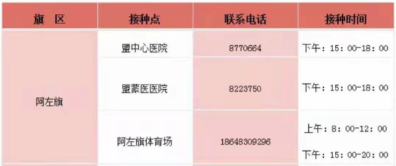 阿拉善左旗新冠病毒疫苗接種咨詢電話