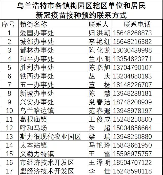 烏蘭浩特市新冠病毒疫苗接種咨詢電話
