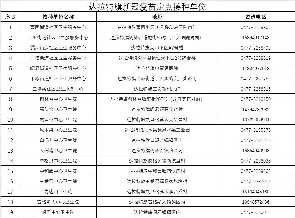 接種地點(diǎn):內(nèi)蒙古鄂爾多斯市達(dá)拉特旗樹(shù)林召錫尼街56號(hào)