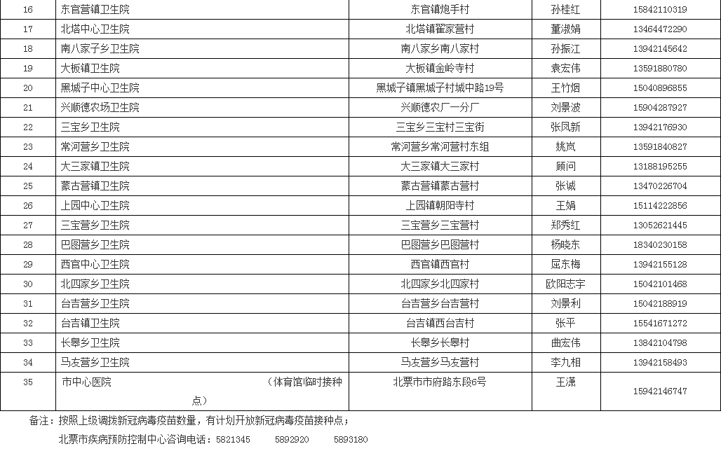 即日起,朝陽市北票市內(nèi)18歲以上居民(含60歲以上)不論戶籍,身體狀況符合接種要求的均需免費(fèi)接種新冠病毒疫苗,請您與所在單位或社區(qū)聯(lián)系疫苗接種相關(guān)事宜。零散居民、流動人口也可攜帶身份證,就近自行前往接種點(diǎn)接種,接種點(diǎn)會根據(jù)疫苗供應(yīng)情況、日接種能力、排隊(duì)順序等發(fā)放接種序號。注意;接種點(diǎn)開放時間不定時有調(diào)整,建議先電話或者網(wǎng)上預(yù)約咨詢,朝陽市新冠疫情防控咨詢電話:0421-2622416,北票市新冠病毒疫情防控?zé)峋€電話:0421-5821345;北票市新冠病毒疫苗接種單位名單、地址、接種時間和預(yù)約電話等相關(guān)信息請看這里↓↓↓